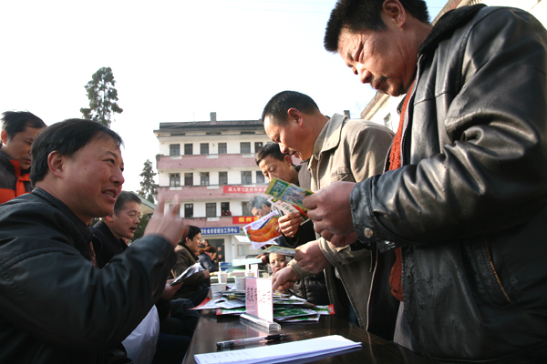 “给我一包玉米种子”,“我要一包辣椒的”,“我想要点桑蚕养殖资料。”农业服务点送种子、送资料、送信息等活动成为了最受老百姓欢迎的服务。来自柏林村的章大叔告诉记者,柏林村是镇里有名的“西瓜村”,村民基本上都种植西瓜,去年全村种植西瓜200多亩,这次希望能找到一些有关西瓜病虫害防治方面的资料,以便今年把西瓜种得更好。