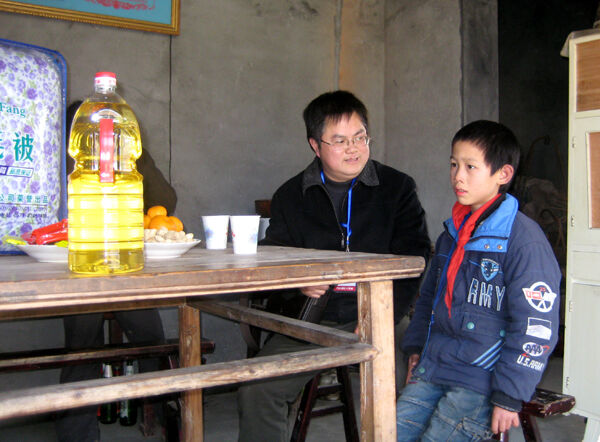 图为县红十字会工作人员看望大溪边东山村孤儿余佳祺
