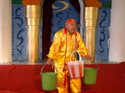 这位拥有着神奇技艺的大师是何许人也?他就是能口吞26把宝剑、一口气吞两副象棋子、口吐人工喷泉,2005年被吉尼斯总部授为“口吞象棋”和“口吐喷泉”技艺的世界第一人,这些年连续走上全国多家电视荧屏和舞台的民间奇人——天意大师,他乃开化林山乡菖蒲村人是也。