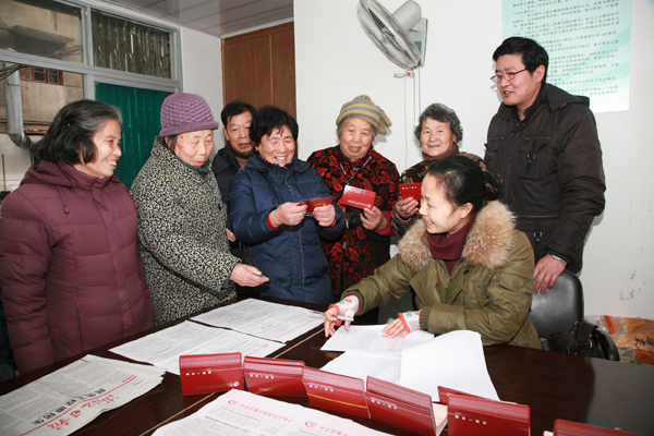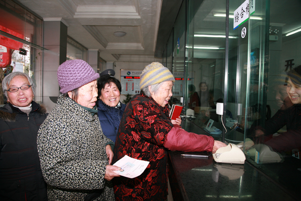 1月25日下午4时,在芹南社区居委会便民服务窗口,来自南湖小区的徐桂梅、徐德贞等老人喜滋滋地领取养老金存折。至此,全县符合条件、证件齐全的37111名老人的养老金已经全部发放到其个人存折账户上。还有部分老人正在抓紧办理相关证件,他们的养老金有望在春节前全部发放到位。