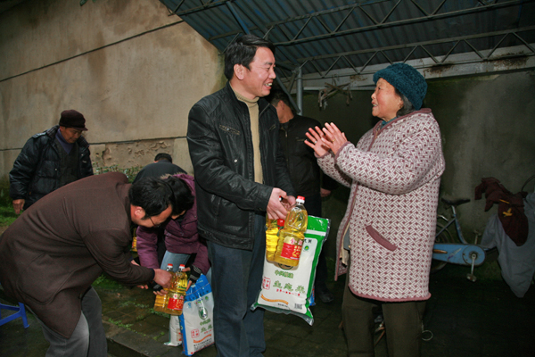 “谢谢你们,给我送上了米油,就是来看一眼我们也很高兴了”78岁的汪爱仙老妈妈感激地对给她送上大米的叶忠兴说。2月5日下午,城关镇荷花社区、中兴粮油有限公司开展送温暖、送岗位活动,该公司给社区的15位困难户各送上2袋大米、2壶油,给5位困难户送上了红包,同时和2位下岗工人签订了就业岗位。县领导吴水松参加了活动。