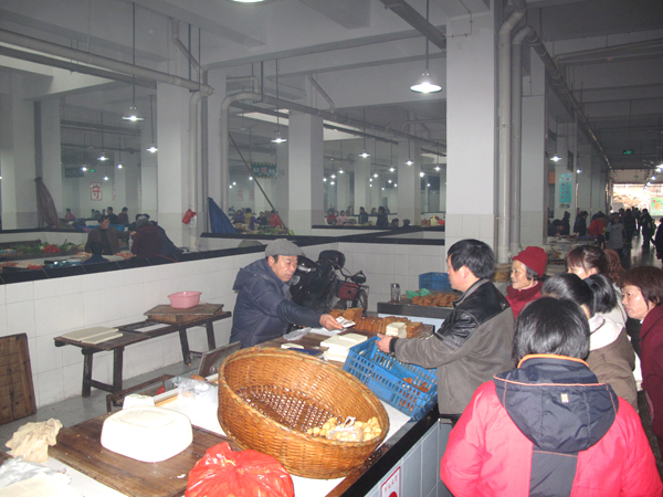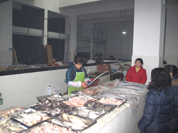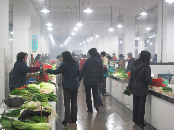 芹北农贸市场副经理徐荣贵介绍,市场管理办公室制定了《经营者行为规范》、《食品质量自查制度》、《消防安全制度》、《不合格产品退市制度》、《信用分类监管制度》、《产品质量承诺》等制度规范,市场还设立了消费者投诉接待站和公平秤。徐荣贵相告,原先在少年宫弄临时搭建的菜市场设施比较陈旧,路面较为狭窄,市民购物不太方便。春节临近了,为了方便群众购买,所以芹北农贸市场赶在春节之前开张营业,给市民一个良好的购物环境。