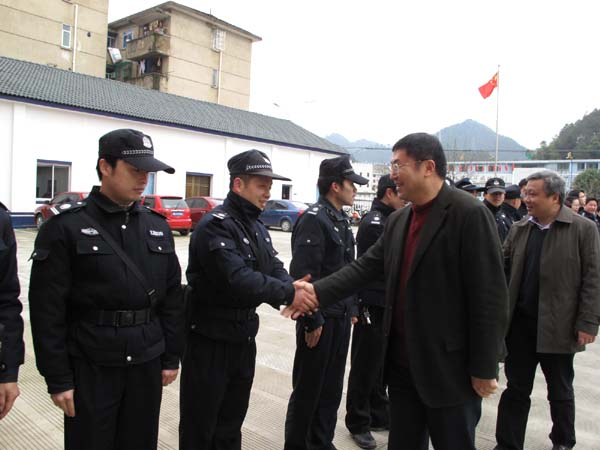 在县交警大队和城关派出所,毛建民代表县委、县政府向全县公安干警表示感谢,他说:“今天是腊月二十九,我代表县委、县政府看望大家。春节即将来临,这是万家团圆的日子,也是公安干警最辛苦的日子。过去的一年,在县委、县政府的领导下,全体公安干警为开化经济社会发展、特别是平安建设作出很大贡献,为开化的平安建设和经济社会发展保驾护航,县委、县政府对大家的工作是满意的。”毛建民对做好春节期间的安全保障等工作提出了具体要求,并祝全县公安干警在新的一年里新春快乐、工作顺利、合家欢乐!随后,毛建民一行还前往自来水厂和广电总台走访慰问,祝在岗的一线工作人员新春快乐!