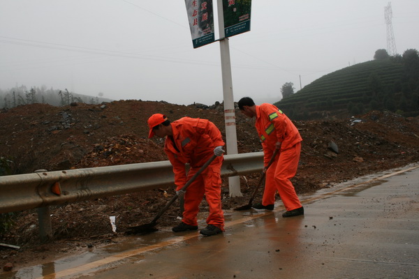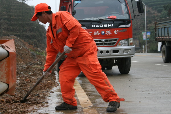 “春节前后一段时间,一直持续着阴雨天气,因此道路养护工作任务也比较艰巨。”说话间,汪发生拿着铁锹,走到国道路边,用铁锹挖出一些缺口,将路上的积水排掉,然后又提起扫把,将路上的沙石等杂物清扫干净。