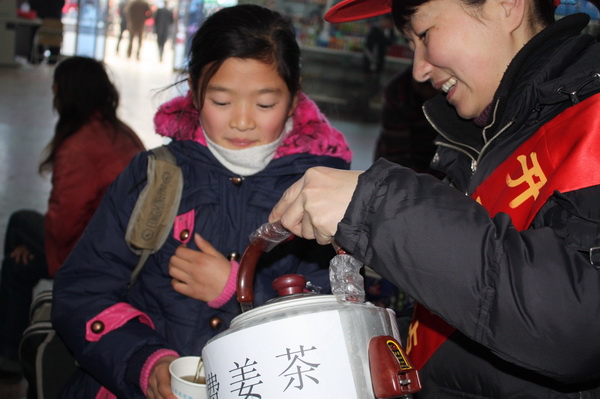 客运南站在候车大厅增设了春运咨询处,增加了售票网点,开通团体订票业务,延长了售票时间,一项项便民措施为旅客排忧解难。扶老携幼,主动为旅客送茶、倒水,微笑迎接每位旅客,一个个温暖的举动,一句句温馨的新年祝福,温暖和感动了许多乘客。