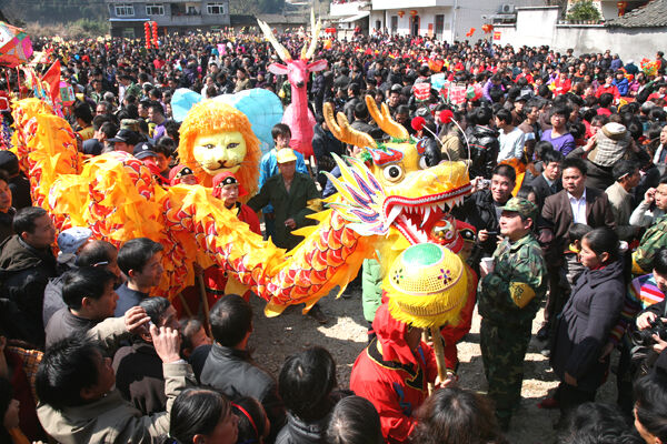 图为2月21日,开化县马金镇姚家村举办宫灯节暨大型非遗项目展示会,十里八乡的村民赶来观看,庆祝灯日的到来。