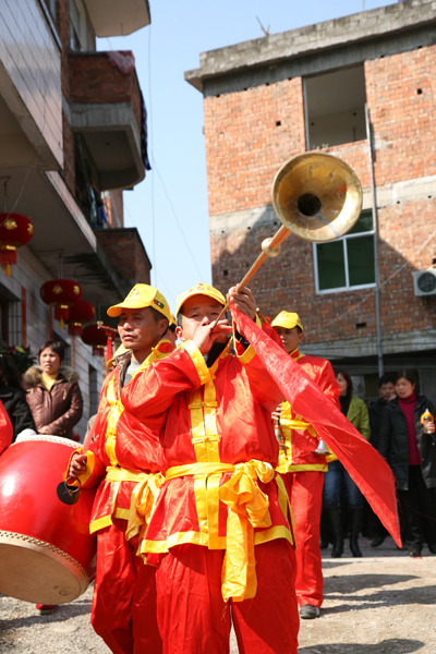 大宗祠内,喜爱热闹的全村男女老少都赶到了,十里八乡的村民也赶来了!甚至来了不少前来欣赏民俗文化的外地游客!一时间,放眼望去,人头攒动,人山人海,欢乐的人群占满视线;放耳听去,丝竹乐器声,欢笑嬉闹声充斥耳边。真是人潮如海,欢乐如海,浓郁的乡土气息,和谐的喜庆氛围,让人仿佛置身其中,倍感身心愉快。