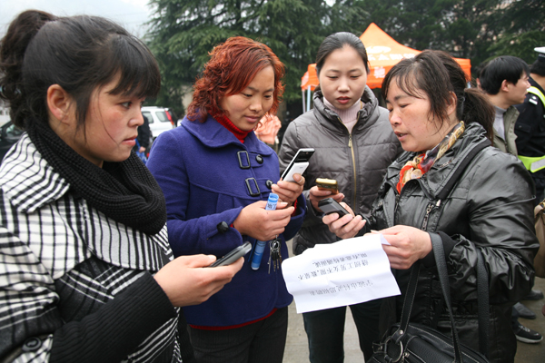 几位求职者拿到宁波一家企业的招工宣传单马上拨打报名电话