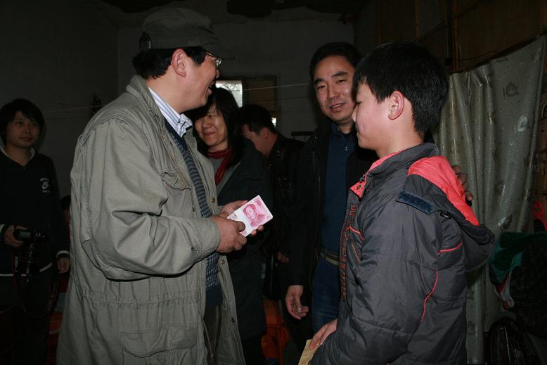 这天上午9点,在方耀宗的租房里,大伙儿静静地听完耀宗母亲的诉说,对他们一家的遭遇表示同情。顾勇代表10位摄影师将7000元慈善基金递给耀宗和他的母亲,随后顾勇和罗旭分别将自己的500元摄影大赛评委费也一并捐出。在场的其他人也纷纷捐出自己的一份心意,大家安慰耀宗的母亲要乐观地面对生活,嘱咐耀宗继续努力学习。