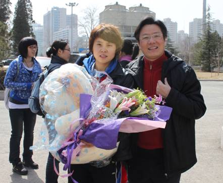 3月23日,赵晓凯在首都体育馆迎接冬奥冠军王濛再次凯旋