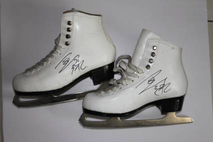 王濛签名的这双冰鞋将1元起拍,拍卖款捐给西南地区遭受旱灾的孤儿