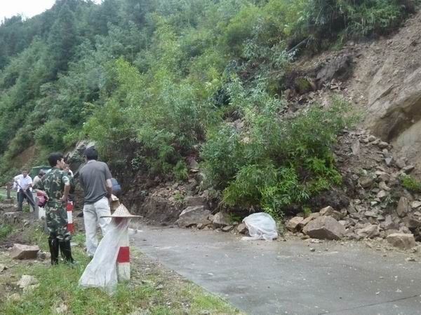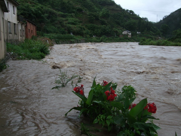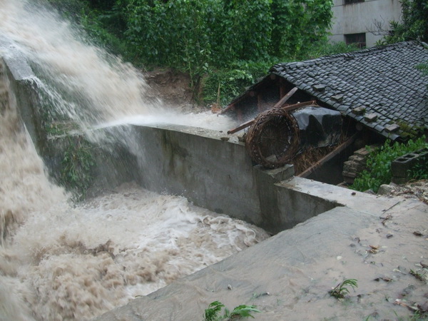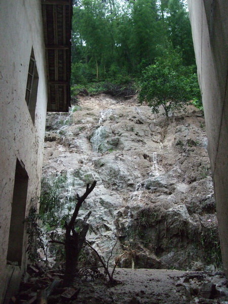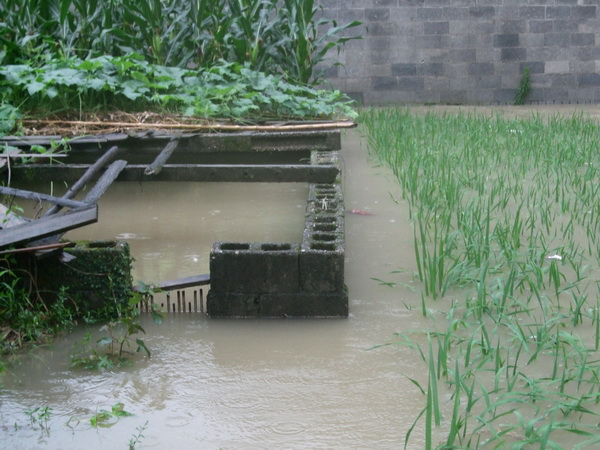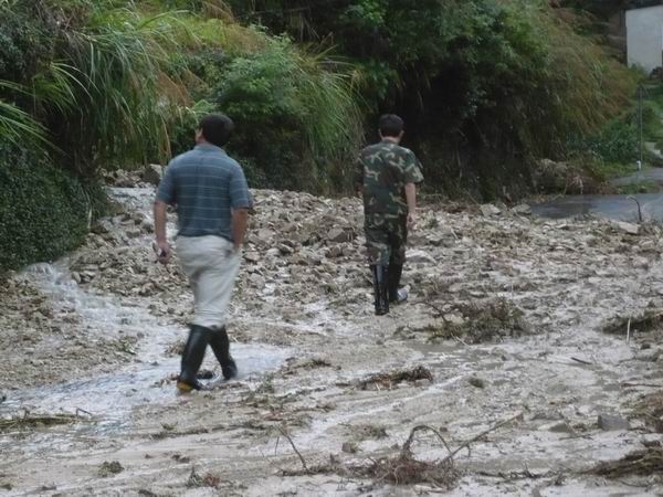 记者连线何田乡:多处山体塌方 防洪堤被冲垮 清水鱼塘受淹(图)
