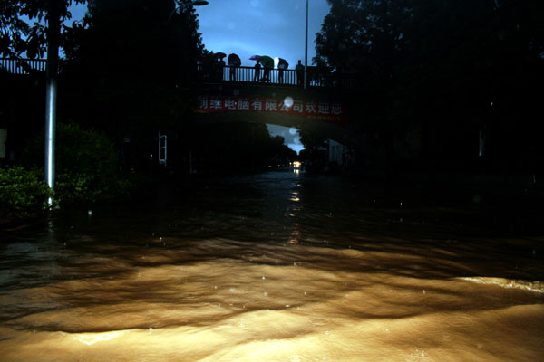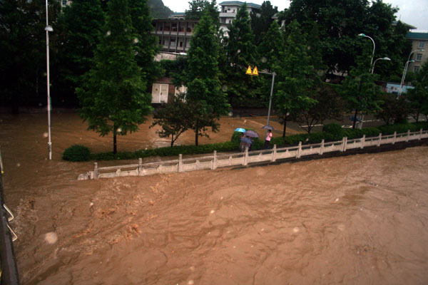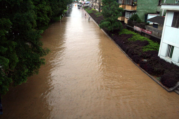洪峰到来 开化县城洪水“上路”(图)