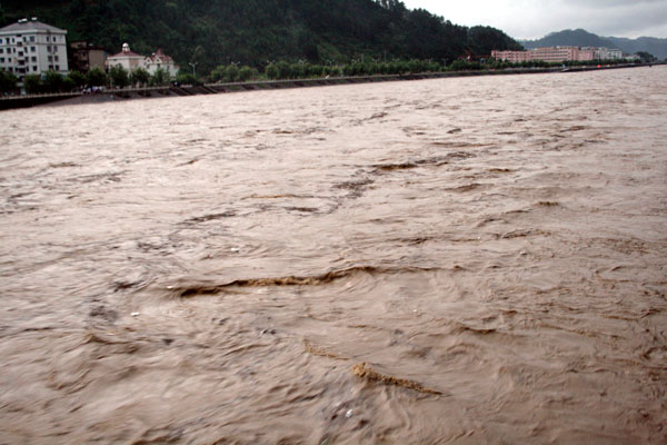 洪水在芹江里奔腾。
