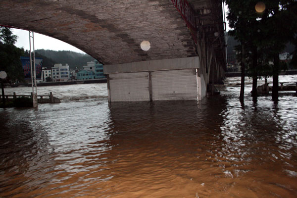 一位在桥头附近开店的刘大爷说,好几年没见过这么大的洪水了,这次洪水来得特别急、特别猛。