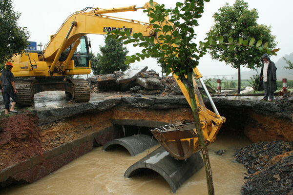 暴雨成灾冲毁路面 开化交通部门全力抢修(图)