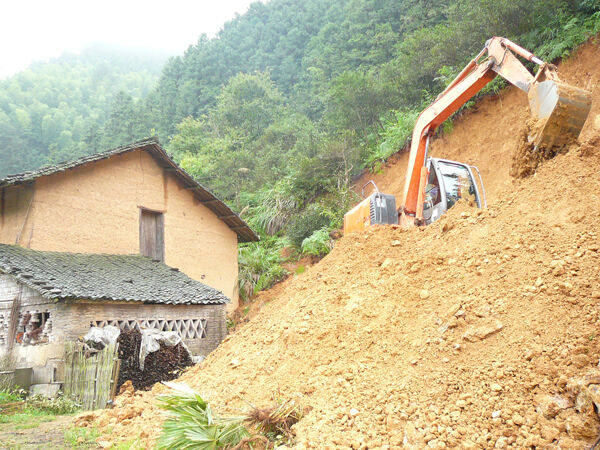 连日来的强降雨,开化县桐村镇产生了山体滑坡、房子倒塌、水稻受淹、道路和堰坝冲毁等灾害,造成了一定的经济损失。全镇广大干部群众迅速投入到抗灾救灾工作中。图为该镇建平村村民邹益星屋后发生山体滑坡,目前正在清理中。