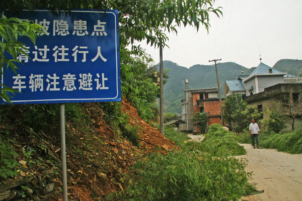 连日的暴雨不但使群众财产受到损失,也造成了一些地质灾害隐患。村头镇芳林的后山在“7•8”洪灾中出现了多处山体滑坡,并出现了一些巨大的裂痕。后经国土部门专家预测,这些裂痕将有可能造成再一次的山体滑坡,而且滑坡的山体会在5万立方米以上,如果再次遇上强降雨,山体滑坡将使山下的公路和16户村民遭受灭顶之灾。在与国土部门商量后,芳林村立即组织村民上山将植被砍伐,以便找到隐藏的裂痕。“我们现在正在对裂痕进行夯平处理,尽量减小雨水对山体的洗刷,受到威胁的农户我们已经都安置好了。”当我们来到芳林村时,这里的村民们正在手提肩扛地往山下搬树木,山上也不断传来斧头撞击树木的砍伐声,在人群中我们找到了正在背枝桠的村主任余维龙,他说,现在公路上已经竖起了警示牌,上山的路不让村民随便通行了,目前国土部门正在研究解决的对策,希望将隐患尽快排除,使村民的生活恢复宁静。