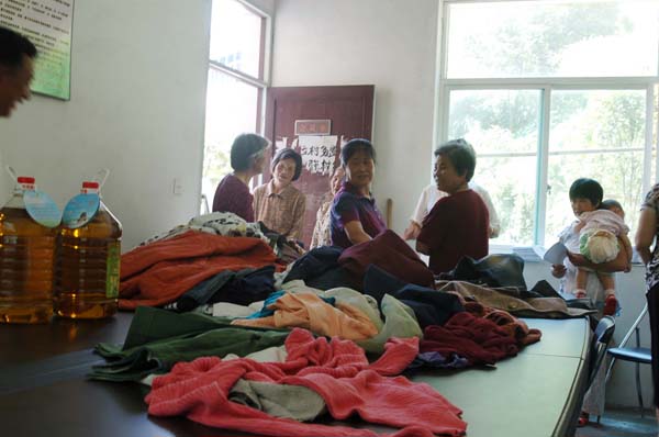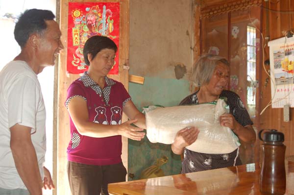 据村主任汪祖威介绍,这三位爱心老奶奶中有两位是他妻子的亲戚,年纪最大的74岁,最小的68岁,都是开化籍退休人员。前阵子,她们无意中听说村头镇武川村受灾比较严重,全村94%的人家都进了水,经济损失超过95万元,有些人家东西都来不及抢收出来,全泡了,就萌发出了想帮一帮的念头。经过一番采购和整理,7月19日上午,她们就来到了村里。汪祖威相告,老人家主要是想尽点自己的心意,所以并没有告诉别人自己的姓名,她们希望用自己的行动带动更多开化的爱心人士,向全县受灾的村庄伸出友爱互助之手。