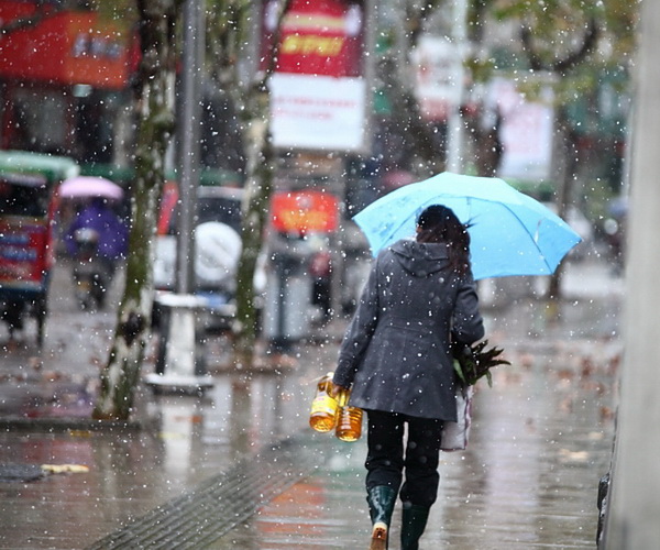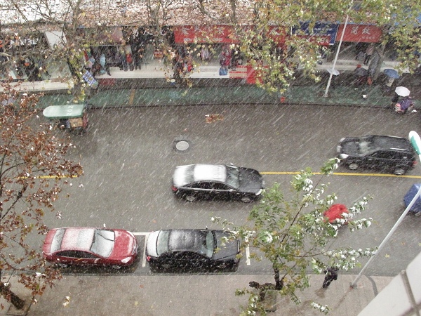 今冬的这第一场雪虽然夹着雨水,气温也很低,但人们喜悦的心情还是难以言表。