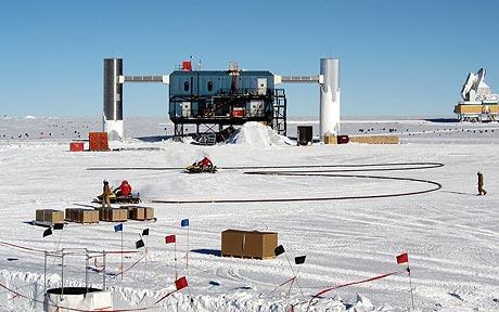 在过去的10年间,科学家们一直在奋力设计并建造一个雄心勃勃的实验装置,以便搞清楚是何种机制产生了宇宙射线,以及一种名为中微子的基本粒子,这种粒子难以捉摸,却到处存在。他们将数千台探测器深埋到南极洲冰雪下超过1英里深处。当宇宙射线和这种粒子和南极洲冰雪中的原子发生碰撞时,会产生转瞬即逝的蓝光闪烁,这些探测器极度敏感,可以记录下这些闪光。通过对撞击产生的闪光特征的记录,探测器能够锁定它们的运行路径,从而帮助科学家确定它们到底来自银河系中的什么方位。