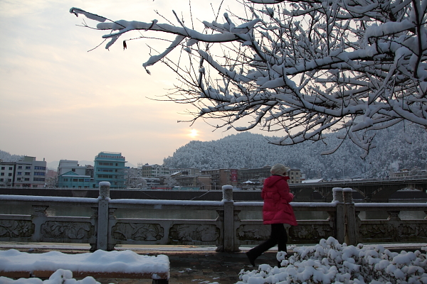 12月16日清晨,记者在开化县城江滨路、龙潭公园看到,“铁杆”晨练者仍在坚持不懈地进行锻炼,一边欣赏着优美的雪景,一边小幅度地动动手脚,一天的心情豁然开朗。不过,下雪天晨练要注意安全,特别是老人,晨练时要注意防冻防滑。
