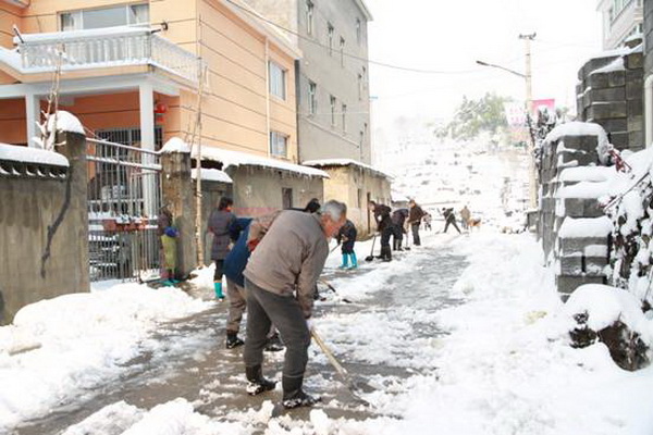 塘坞乡村民在扫雪