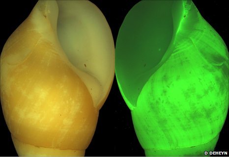 平凡蜗牛拥有奇特荧光色彩外壳 能点亮身体(图)