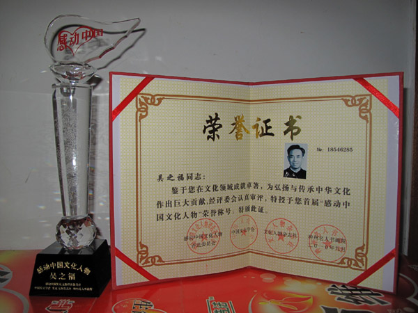 这次能入选首届“感动中国文化人物”,也与吴之福长期以来喜欢写作有关。据了解,首届“感动中国文化人物”评选活动是由中国文化学会、文化人物杂志社、神州名人书画院联合主办,以“传承文明、感动你我”为主题,点评文化领域具有代表性的新闻事件和杰出人物。入围的候选人分为文学、书画、影视、音乐、舞蹈、戏剧、曲艺、摄影等类别,经过提名推荐、初评、复评、投票、终评等环节,最后评选出感动中国文化人物。