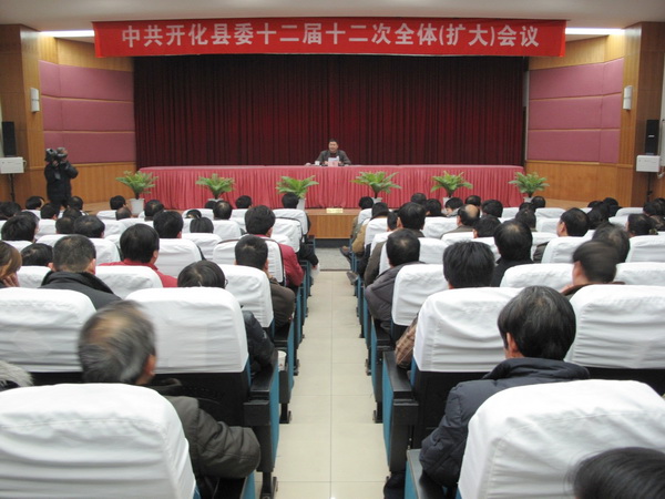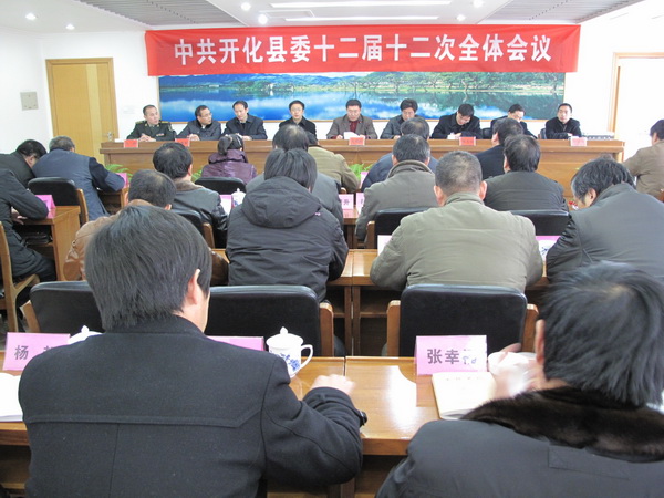 1月11日,中共开化县委召开十二届十二次全体(扩大)会议,全面贯彻落实党的十七届五中全会、中央经济工作会议,省委十二届八次全会、全省经济工作会议和市委五届十三次全会精神,深入贯彻落实科学发展观,回顾总结2010年工作,研究部署2011年工作,审议和通过《中共开化县委关于制定开化县国民经济和社会发展第十二个五年规划的建议》,团结动员全县各级党组织、广大党员干部群众,锐意进取,开拓创新,加快发展,科学跨越,努力为“十二五”发展开好局起好步。