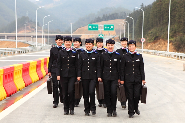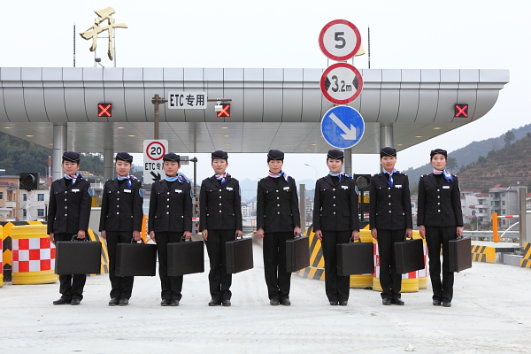 一张热情的笑脸、一声温馨的问候、一句真心的祝福迎送来自五湖四海的司乘。微笑、转体、手式、验卡、唱收唱付、目送,伴着悦耳的“您好,请交验通行卡,请稍后”、 “收您XX元,请稍等”、 “找您XX元,请拿好发票”、 “再见,祝您一路顺风” ……年轻的收费员们整齐统一的仪容仪表,真诚、自然、亲切、甜美的微笑和贴心的服务,给司乘枯燥的旅途增添着小小的惊喜,用他们的温馨服务,微笑服务祝您一路顺风。