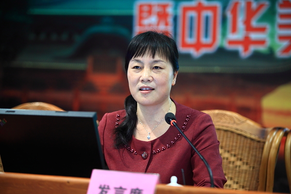 5月15日下午,根雕艺术专场讨论会在跟博园会议厅举行。图为李华蓉副县长就《生态美学视野下的开化根雕艺术》发言。