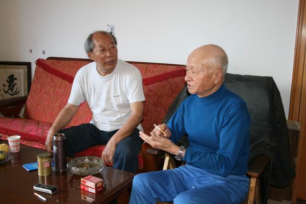 苏维埃铜币的主人邹逢忠在讲述(右)