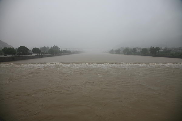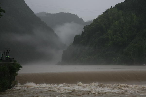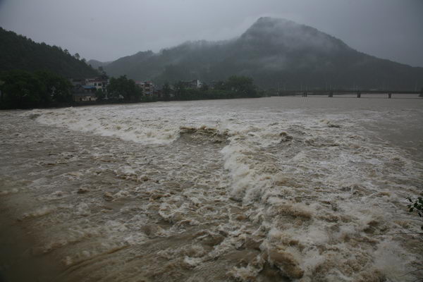 连日来,开化持续雨水天气,14日夜至15日8时普降暴雨、大暴雨,芹江洪水翻腾。这是6月15日上午记者在开化县城拍摄的一组图片。