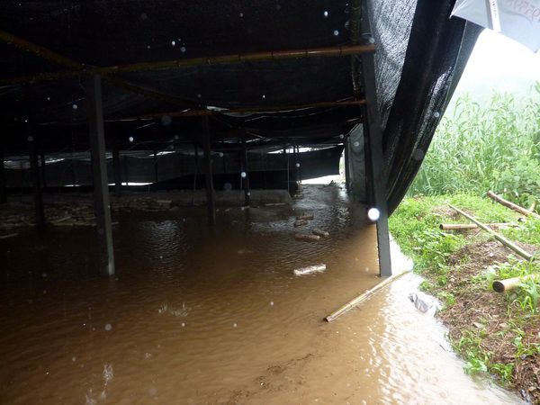 连续强降雨,致使开化县池淮镇的寺坞食用菌专业合作社、音坑乡的三合食用菌专业合作社等发展的食用菌受灾,截至记者发稿时,有50万袋食用菌受灾,预计绝收30万袋。图为6月15日上午池淮镇的食用菌受灾场景。