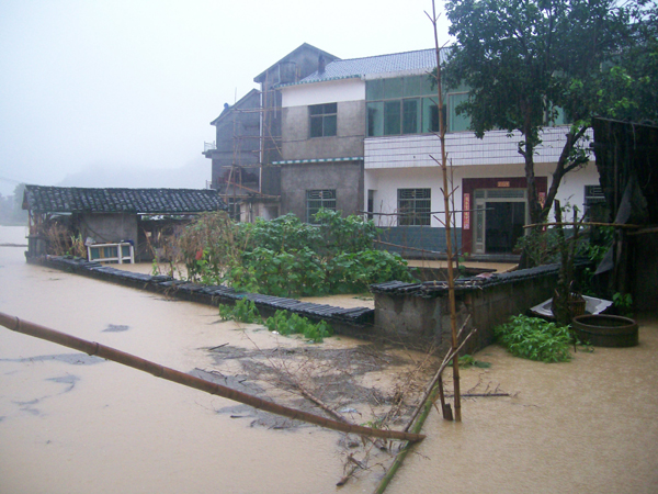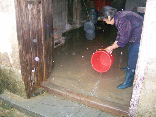 在联盟村,记者遇上了一夜未眠的副镇长吴根良,他正在组织人员排除一倒塌房屋的险情。吴根良告诉记者,华埠镇联盟、许家源、青阳、大郡等村受灾严重,良田基本被淹,一些进村的道路都被水淹没,联盟村已经有好多户房屋倒塌。