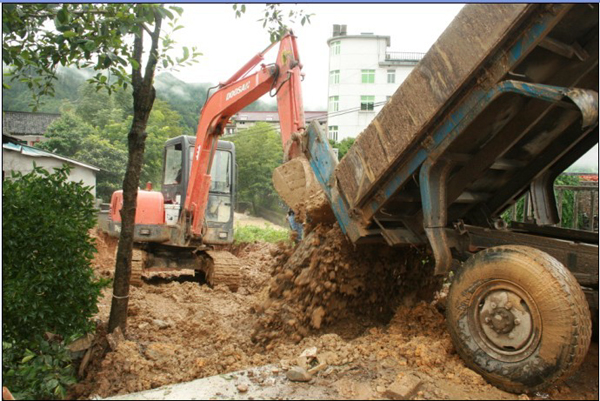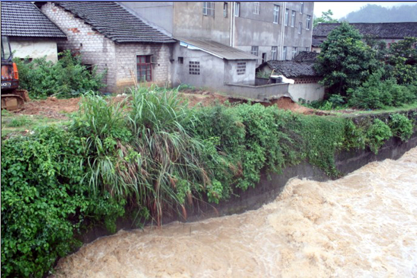 6月15日,暴雨持续袭击,杨林镇乡镇所在地东坑口村村口桥下洪水猛烈冲击河堤,致使桥底河堤底部被冲空,很快冲出了一个大窟窿,危及周边10多幢房屋及沿街店面。上午10时,镇村干部商议后决定以土石方来填补大窟窿,以抵挡洪水的冲击。