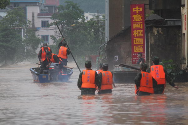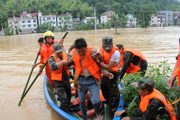 胡炳泉说他们赶到现场时,发现水位上升非常快,两个被困群众包括家属情绪波动都非常大,他们一方面做好思想工作,同时马上向县防汛办汇报,请求县防汛办给予支援,县人武部、消防、公安部门马上组织力量赶赴现场。通过分析以后,救援人员认为现场施救难度非常大,水很急,采用冲锋舟施救的办法比较稳妥。