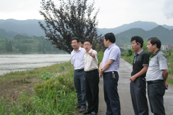 6月16日下午,在外学习的县委副书记毛建国一回开化,即赶赴音坑乡察看灾情,指导抗洪救灾工作。
