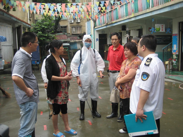 6月16日早上开始,华埠卫生院派出3个小组6个人分赴城区各个受灾区域,开展疫情防控工作,同时派出2个人到各行政村巡查,调查受灾情况,分发消毒药品,做好消杀的指导工作。