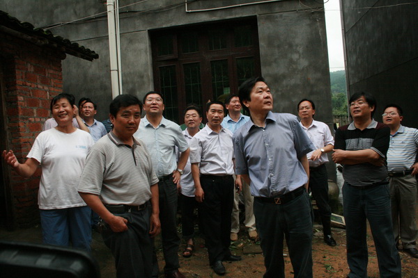 随后,尚清来到受灾较重的华埠镇华兴村,这里地势普遍较低,村庄依山沿河而建,洪水来临时几乎漫过全村,农田庄稼无一幸免,好几处出现山体滑坡、农房倒塌现象,通讯、电路全部中断。尚清走进村庄时,见广电工作人员正在抢修电缆,就走上前去询问:“通讯、电路什么时候能抢修通畅?要多派几个人力,争取尽快修好,让村民早些看到电视!”叮嘱一番后,尚清又来到了受灾村民林水凤家中察看。洪灾发生时,她家的房屋后面出现山体滑坡,厨房被泥石流淹没,所幸在村干部的组织下,人员及时转移至安全地带。“不要怕,一定要坚强,党和政府会帮助你们的!”尚清一面鼓励林水凤一家人,一面叮嘱镇村干部要切实做好受灾群众的转移安顿工作,要充分发挥党员干部带头作用,积极组织大家开展生产自救,努力把洪灾带来的损失降到最低。