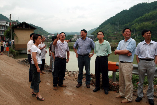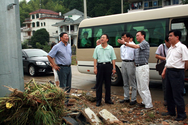 国家防汛总指挥部办公室副主任张家团来开化县检查灾情指导抗灾
