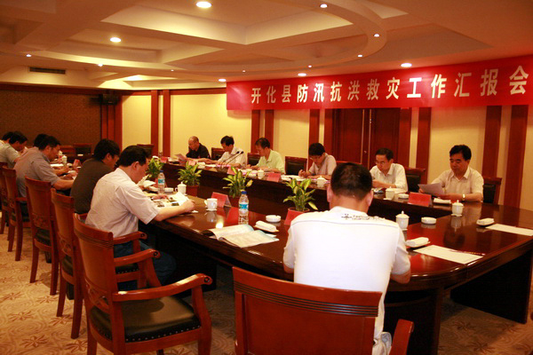 汇报会上,张家团认真听取了开化抗洪救灾工作情况汇报,对开化县委县政府带领全县上下全力抗灾及取得阶段性重大胜利给予了高度肯定,认为开化在此次洪灾中,组织领导迅速有序,调度指挥科学有力,监测预警及时准确,广大干群齐心协力,有效应对了这场特大洪灾,抗灾救灾各项工作成效十分显著,最大程度地保护了人民群众的生命财产安全。张家团对奋战在抗灾一线的开化广大干部群众表示崇高敬意和诚挚慰问。