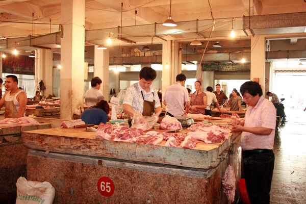 “现在猪肉也涨价了,原来卖13块一斤,现在涨了1块钱!”正在买肉的郑女士向记者表示。