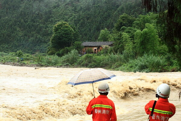 华埠镇联盟村息村自然村:湍急的洪水中,民兵小分队到成为“孤岛”的民房中救援;