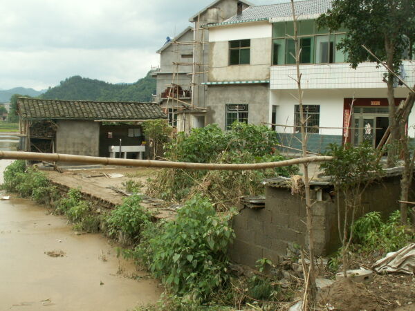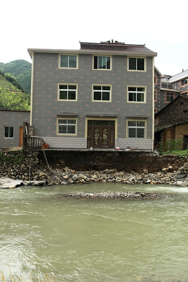 桐村镇王畈村:肆虐的洪水令河边的民房岌岌可危;
