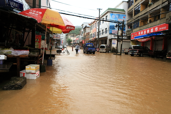 洪水退去,集镇及时清理干净,恢复往日的平静。