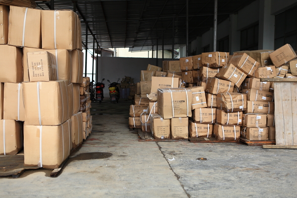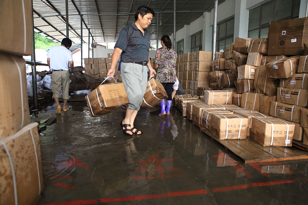 浙江万华密胺制品有限公司:员工正在抢救准备出厂的产品;