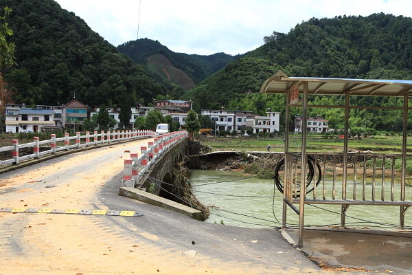 桐村镇王畈村:至江西马岭底村的公路被洪水冲垮;