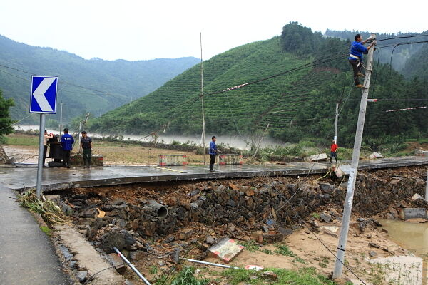 6月17日——18日,洪水渐渐消退后,记者在多个乡镇看到,公路段、供电、电信、广电、移动等部门工作人员正在展开灾后抢修工作,村民们也自发进行灾后生产自救。